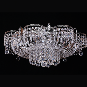 С вертикальным размером мы уже определились: чем выше потолок, тем более вытянутой может быть люстра, и наоборот. С горизонтальными размерами можно поиграть: маленькая площадь – не приговор. Очень интересно выглядят крупные потолочные светильники в небольшом помещении, они словно «раздвигают» стены. Сколько стоят хрустальные люстры для спальни? Цена во многом зависит от размера и модели светильника, актуальная стоимость наших люстр указана в каждой карточке товара.